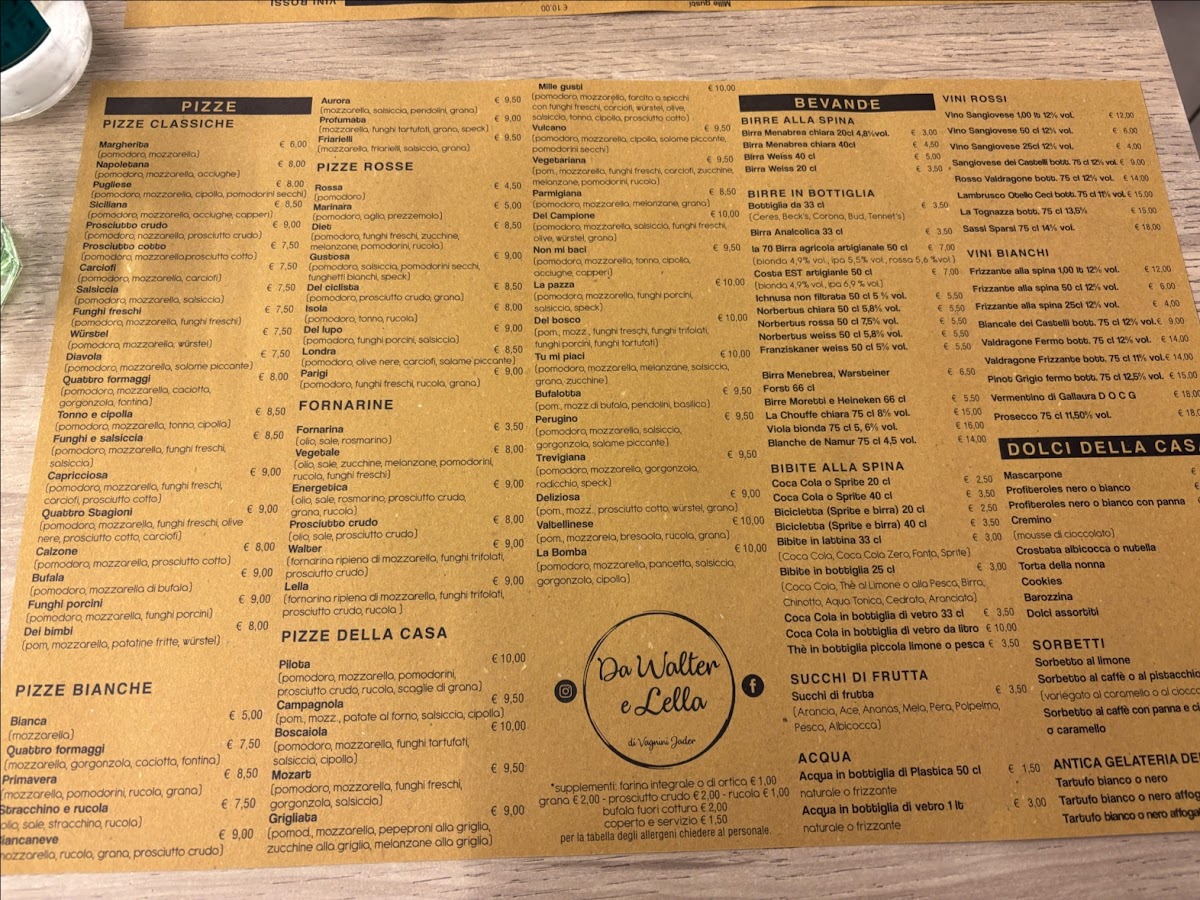 In conclusion, the menu at Walter and Lella showcases a wonderful balance of classic favorites and creative specialties, all made with high-quality ingredients. Whether you prefer a simple Margherita or a more adventurous option like the Pilota, there is something to satisfy every pizza lover's craving.